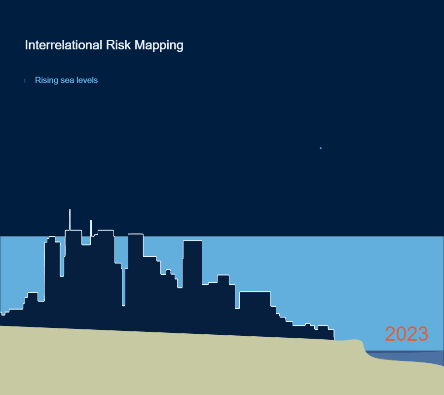 Sinking Cities are a modern global phenomenon. There are varied causes according to different locations and environments. Delta cities are especially prone to sink, often having been built on silt. It compresses under pressure, increasingly as the volume of the city's mass grows and is spatially concentrated. Rising sea levels can increase the volume of water absorbed by the silt, and this can increase problems by creating areas of sub-surface instability. Another factor is the extraction of groundwater. Jakarta is a well-known sinking city example – the north of the city has sunk 2.5 metres in the last 10 years.